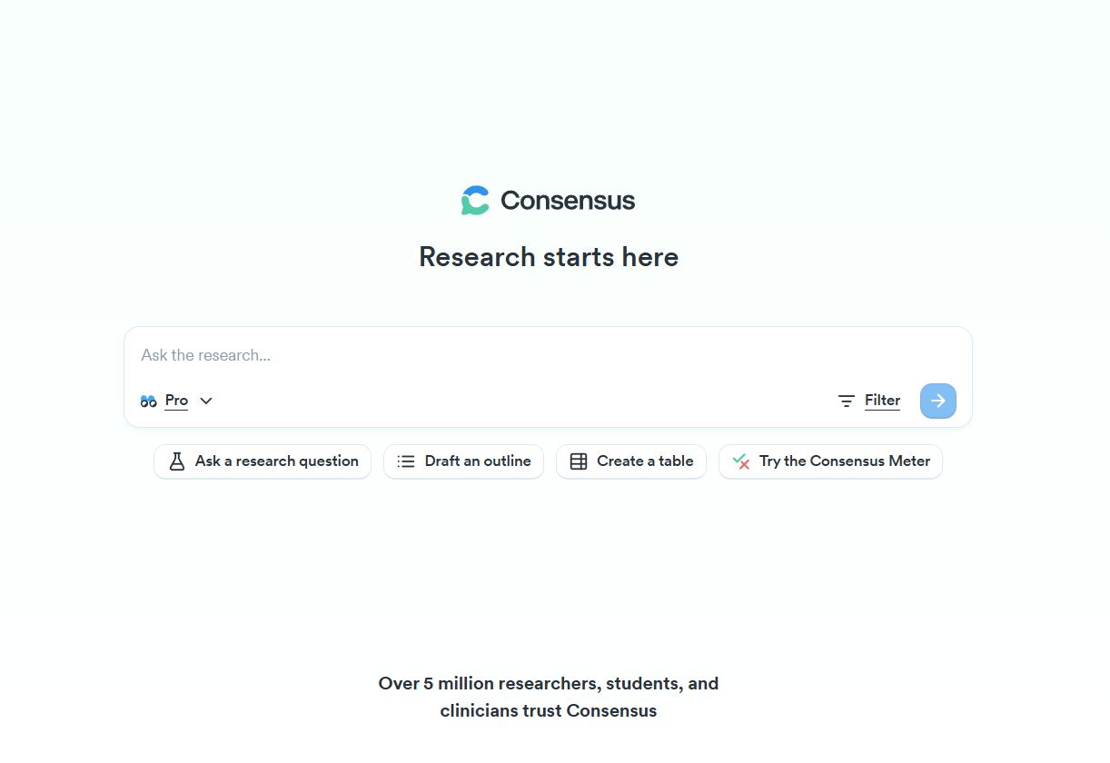 Consensus greets you with a simple and friendly interface. It works through a chat-style system that lets you refine your prompts. It also quickly answers questions and includes tools to help you draft accurate citations.